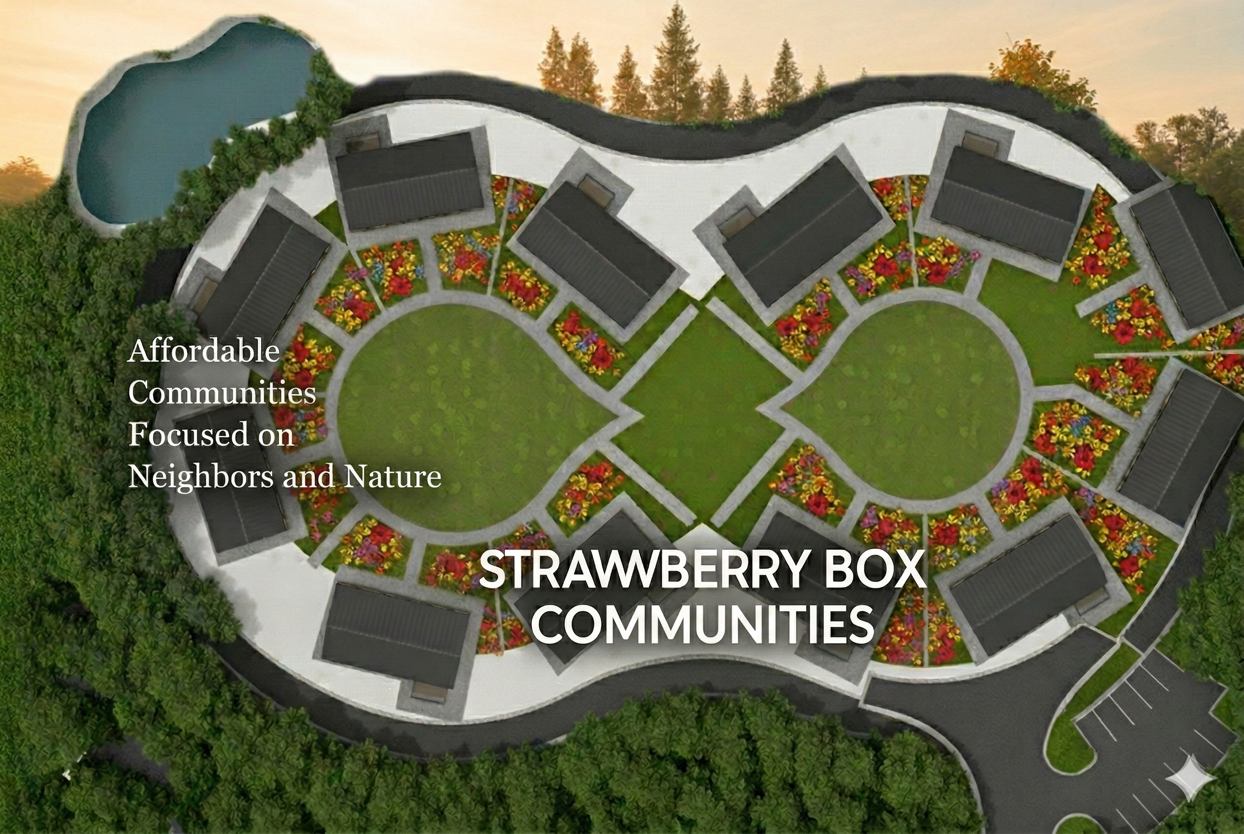 Strawberry Box Communities is a non-profit residential developer leveraging innovative manufacturing and community design strategies to accelerate the creation of sustainable, affordable homes in unique communities that focus on neighbours and nature.